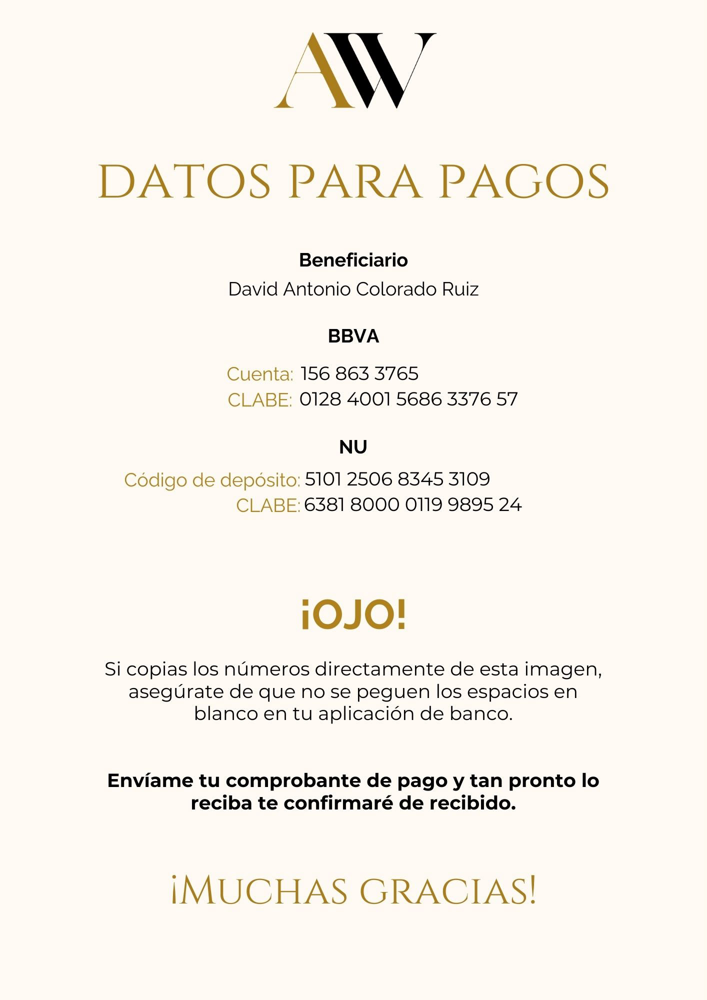 Puedes pagar con la siguiente información